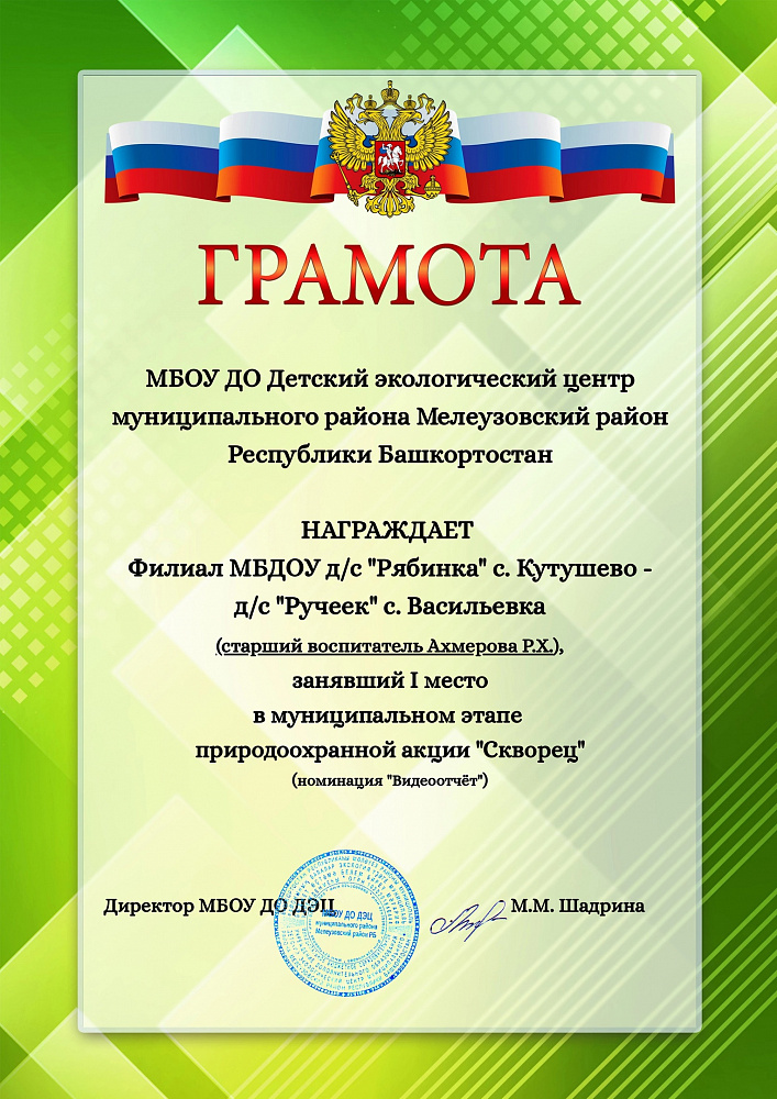 МБДОУ Д/с "Рябинка" д.Кутушево МР Мелеузовский район РБ