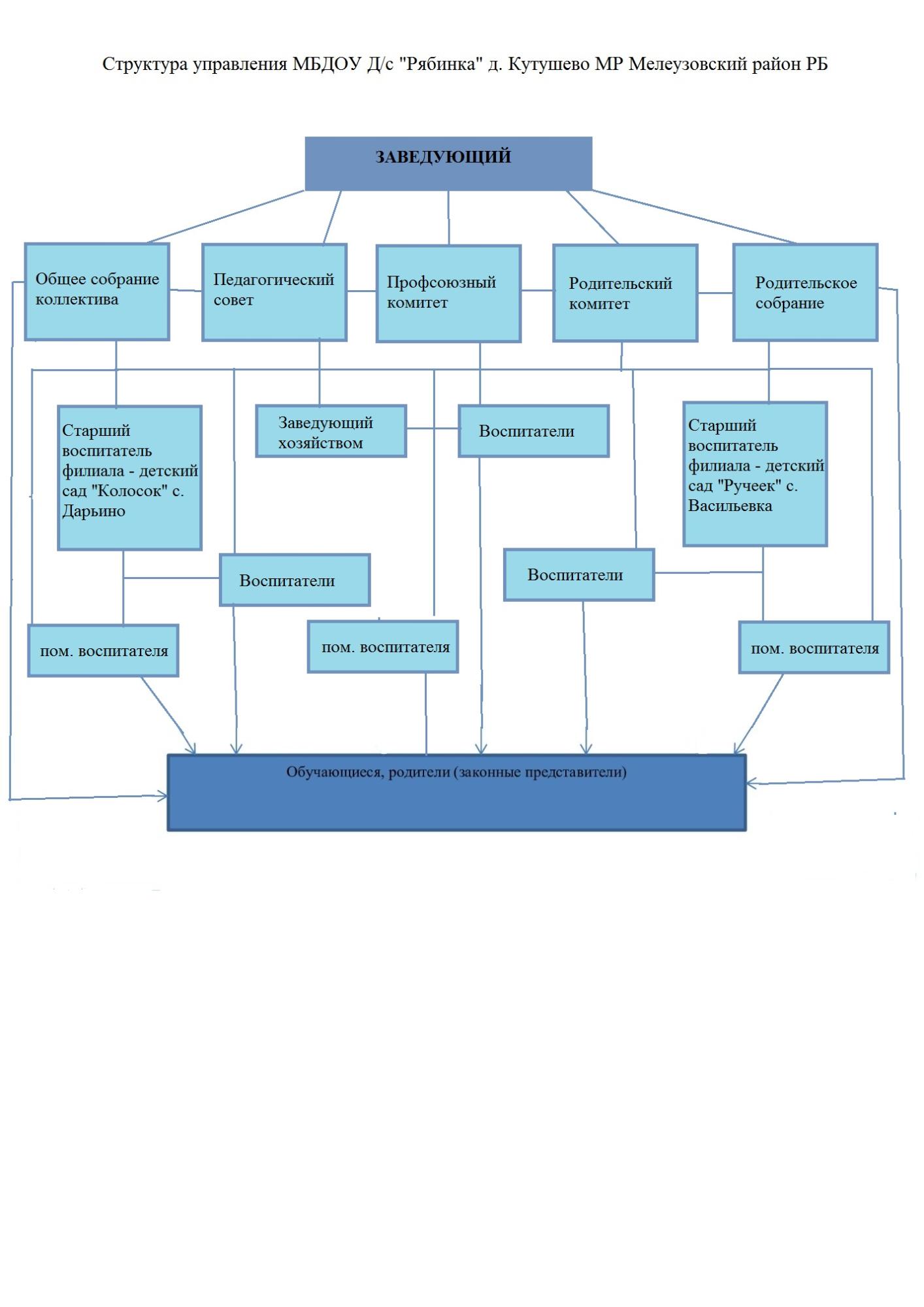 Управление МБДОУ осуществляется на основе сочетания принципов единоначалия и коллегиальности. Управляющая система состоит из двух структур, деятельность которых регламентируется Уставом МБДОУ и соответствующими положениями: