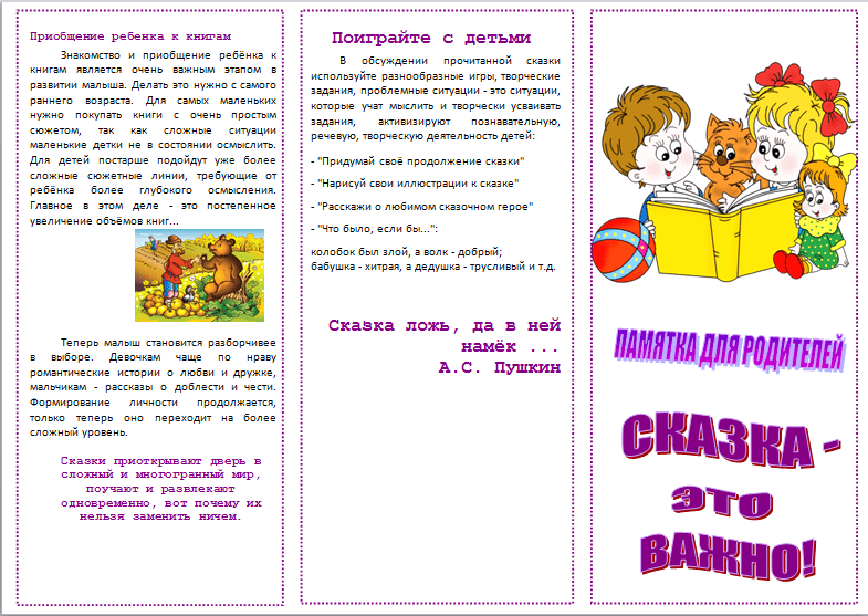Памятка для родителей "Сказка-это важно!"